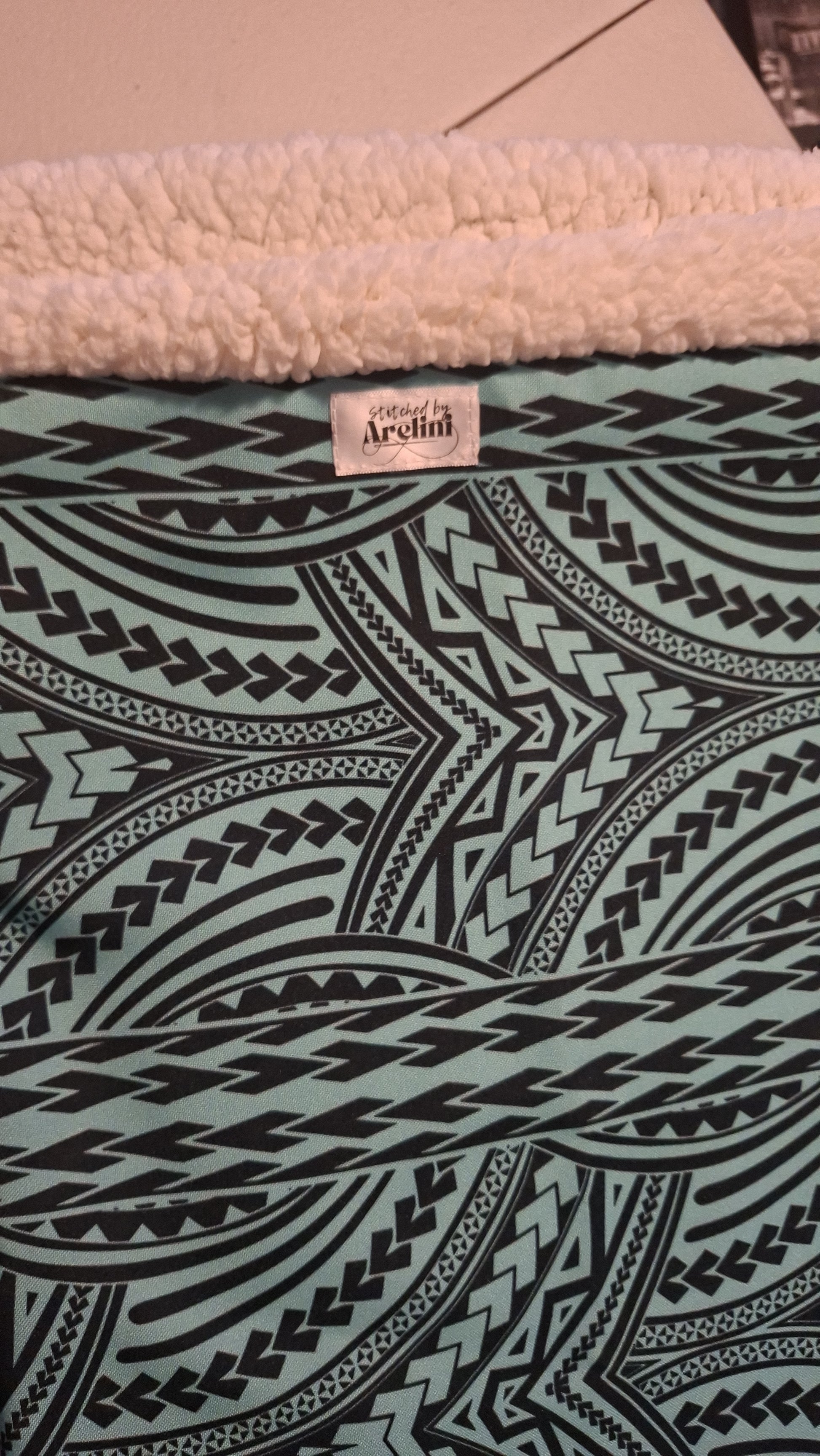 A true blessing of comfort and culture. 'Manuia' means blessing in Samoan, and this blanket is just that, a cozy sherpa embrace on one side, and a beautifully bold Polynesian print on the other.